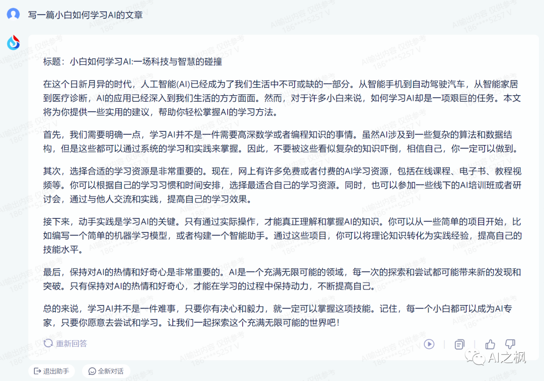 作为一名文章写作高手,我可以告诉你,要充分利用讯飞星火认知大模型的优势,撰写一篇引人入胜的关于《小白如何学习AI》的文章。首先,你只需输入该主题,大模型就能为你构建起一个完整的文章骨架,包括标题、摘要、正文和结尾。接下来,你可以根据自己的需求对这个框架进行相应的调整和完善,从而创作出一篇独具特色且质量上乘的文章。