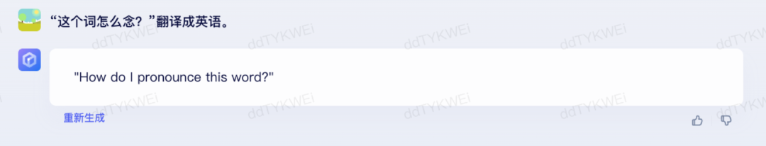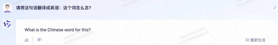 点评:文心一言翻译的是“请问我怎么读这个词?” ,通义千问翻译的是 “你能告诉我这个词是什么意思吗?”文心一言的翻译更准确一些。通义千问自己出的题却没有答好,有点匪夷所思。