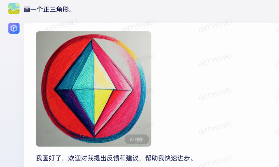 还是不甘心,继续跟文心一言对话,想着让它让画一个正三角形的图吧,如下:
