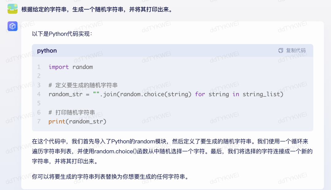 点评:同样来自程序员的评价:“这两个对题目的理解都不一样,所以写的也不一样。文心一言的是生产随机字符串,26个字母随意拼;通义千问的是随机的英文单词,我感觉这个更切合题目。”