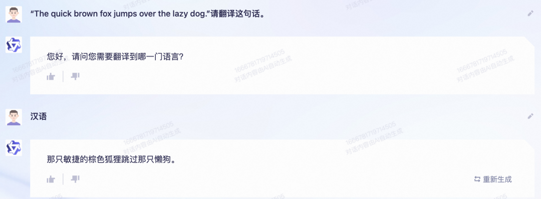 点评:这个题目两个都翻译的大同小异,通义千问的会更具体。可能因为题目是文心一言出的,所以它直接翻译成了汉语。而通义千问会问是“翻译成哪门语言”,考虑得更周到一些。