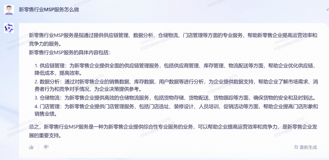 对于这个问题,通义千问从四个关键方面进行了详细阐述:供应链管理、数据分析、仓储物流以及门店管理。总体而言,这家公司认为新零售行业的MSP服务是一种提供全方位专业支持的商业模式,能够助力企业提升运营效率并增强竞争力,从而成为推动企业发展的关键动力。