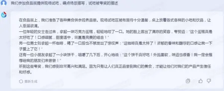 🎉今年各类展览活动纷纷而至,我挑战自我,尝试运用讯飞星火描绘一家食品制造商的参展场景及其试吃活动。令人惊喜的是,这篇文章竟然获得了一定的好评。不仅成功地描绘了展台的超高人气、温馨布置,以及食品的美味和口感,我还用“轻轻地咬一口”这样的词语,使得读者仿佛身临其境,画面感十足。👏在详细的试用过程中,我发现讯飞星火认知大模型的表现远超预期,其智能程度与主流产品相当,甚至在某些方面 even超越它们。这无疑是一项令人振奋的成果,为我们提供了一个强大的工具,用于描述和分析复杂的经济现象。