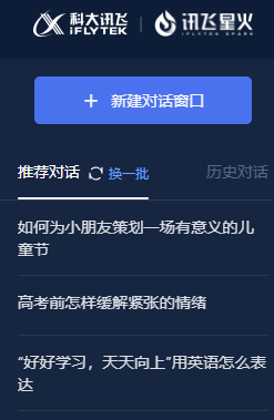 我们从这些预设的问题,就可以看出讯飞星火的一些功能,和讯飞星火使用的提示语。