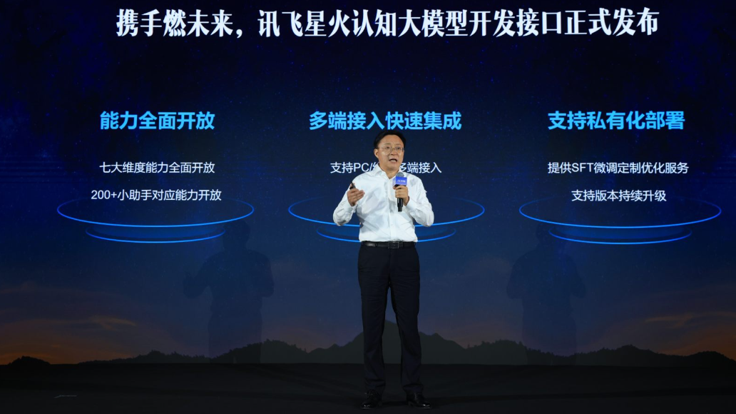 值得一提的是,在今日的发布会上,星火认知大模型开发接口也正式发布,包括七大维度以及200+小助手对应的能力全部开放。同时,星火支持30分钟快速集成,满足PC等多终端接入;提供SFT微调的定制优化服务及版本持续升级。