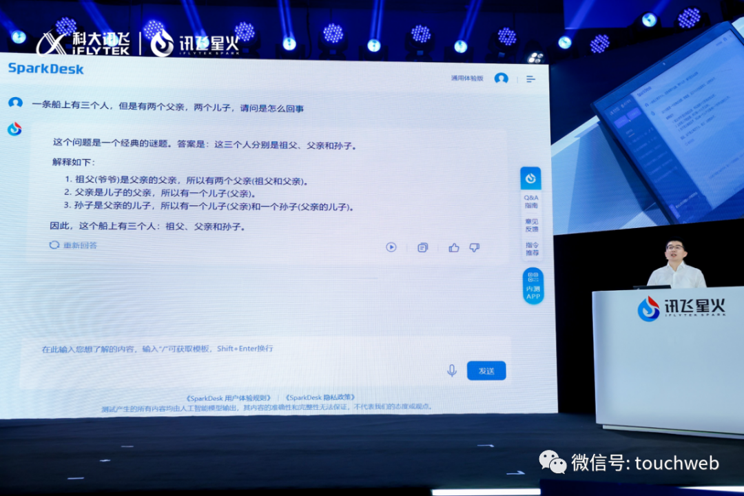 “大模型真正强大之处,不是使得生成的内容与直接搜索一模一样,只有以自然语言理解为核心,结合类搜索等插件能力,能解决更加复杂的问题。”他进一步表示,语言理解能力是未来大模型成为人类助手最重要的能力,此次开放式问答取得突破正是体现了讯飞语言理解能力的领先。