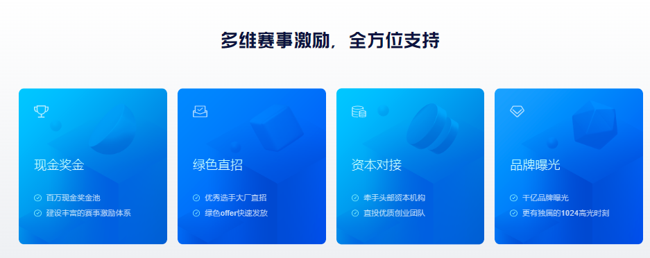 本次A.I.开发者大赛公益赛道除了高额奖金和定制奖杯外,还将有AI全链创业扶持、绿色就业通道&讯飞 Offer 、科大讯飞创孵基地绿色入驻通道、AI服务市场入驻特权等多样化的赛事激励!同时各赛道还提供了个性化奖励,如1024开发者节全场通票、专属大赛礼包等作为大赛的额外支持。