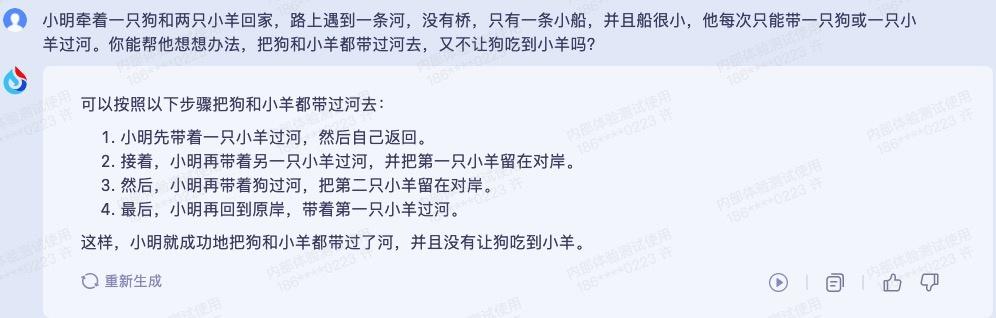 逻辑理解能力方面,小编首先找了一个经典的过河问题来询问讯飞星火。题干比较长,而且有点复杂,可以看到,它能很快地将题目意思理解,然后把过河的步骤一条一条地梳理出来。