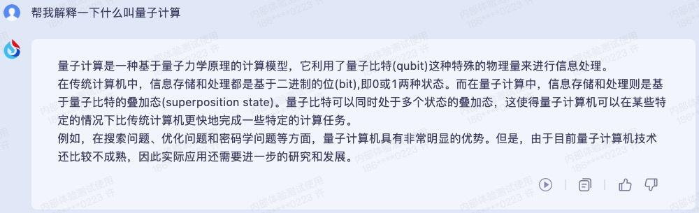专业知识能力上,小编首先让它帮我解释一下量子计算,可以看到它能够以相对简明的方式将量子计算的概念给解释出来。