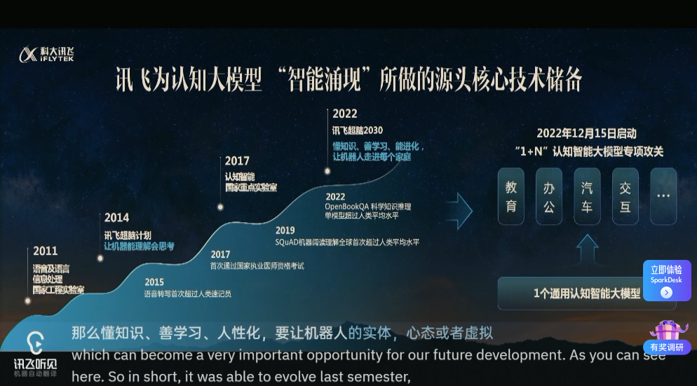 根据发布会上科大讯飞董事长刘庆峰的介绍,讯飞是在去年 12 月开始启动认知智能大模型的专项公关,而在短短 5 个月左右的时间里,讯飞星火就能呈现出目前这样基本成熟,让人倍感惊艳的产品形态,这背后,其实还是要得益于科大讯飞在大模型源头核心技术上超过十年的储备和沉淀。
